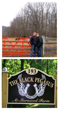 |  The Black Pegasus at Sherwood Farm is located on 90+ acres in Franklin of Sussex County. We are conveniently located minutes from Routes 15, 23 & 80 and about 50 minutes from NYC. It's owned and operated by Theresa and Ian Sherwood with the help of a horse loving staff. Our farm is an exceptional boarding facility with superb care, 10 x 12 and 12 x 15 matted box stalls, wash stall with infrared heat lamps, heated tack room and lounge with Directv and WiFi. We offer acres of beautiful pastures with automatic waterers and run in sheds, and a 150' x 200' outdoor riding arena. We cater to all disciplines of riding and whether it's training for shows or just enjoying our trails, there's something for everyone.